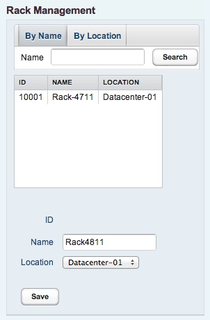 Rack information can be either retrieved by name search or by location. For the name search, just a contained pattern of the rack name is required.