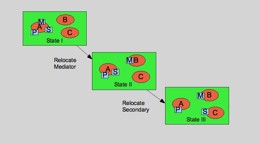 If all daemon programs are up and running, the mediator and secondary are able to be relocated as illustrated in the following picture